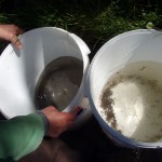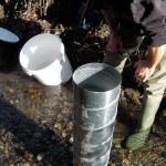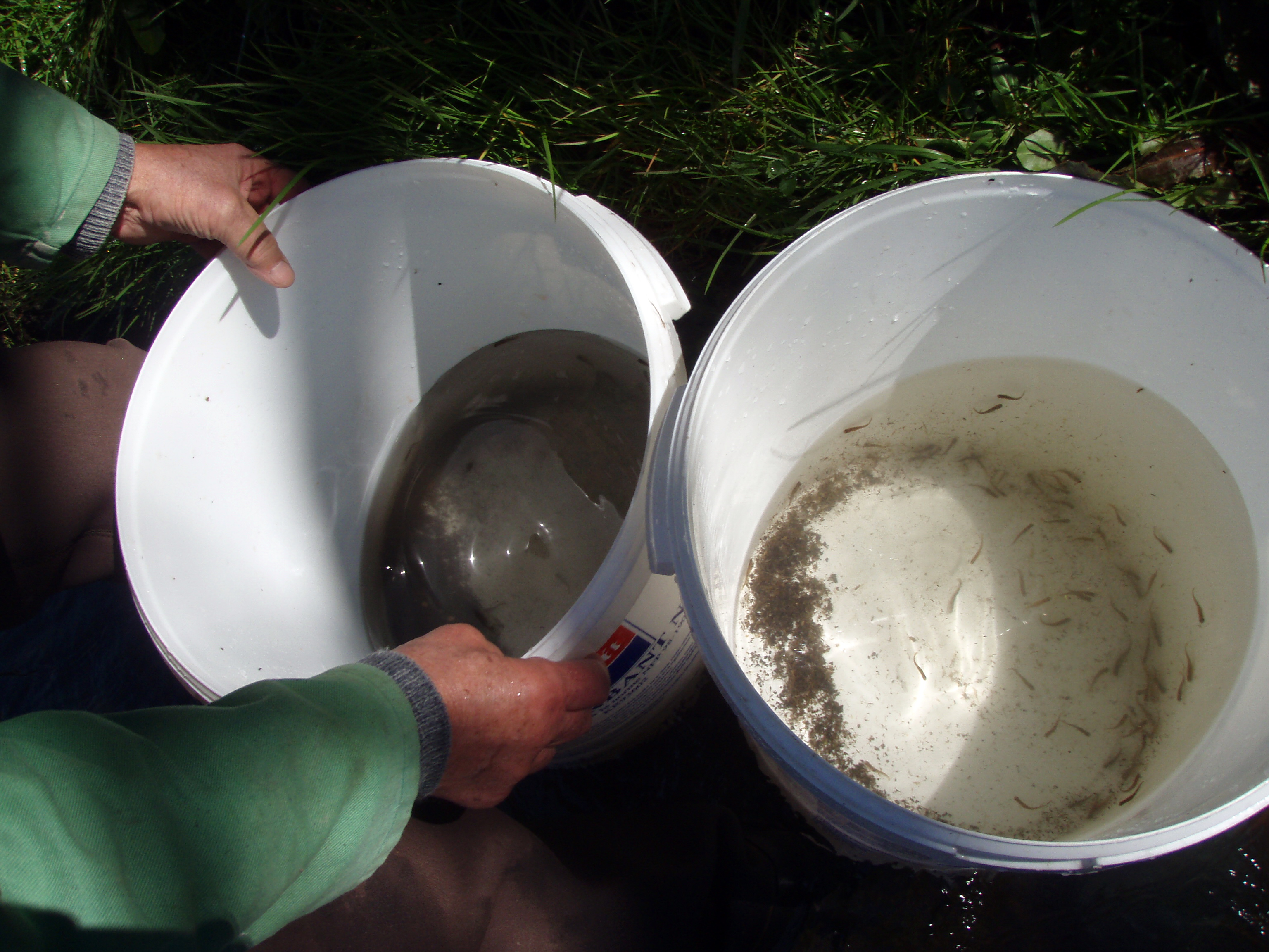 Les œufs ( photo 2013) que nous utilisons proviennent de la pisiculture de Soueich. Après avoir choisi et préparé l’endroit où nous allons déposer les oeufs, nous les mettons en place . L’endroit composé de galets doit avoir une granulométrie bien adapté et laisser passer l’eau sans que le courant ne soit trop fort.